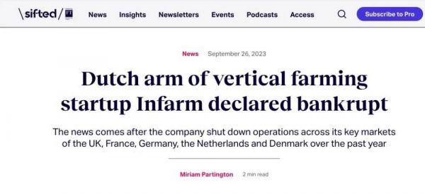 今年9月,infarm荷兰母公司宣告倒闭。图源:新闻截图