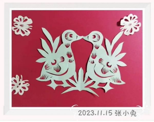 第一节课她学会了剪兔子、第二节课剪春字,第三节课剪小鱼......四节课下来,她从什么都不会,到熟练掌握锯齿纹、月牙弯的剪法,并且越剪越上手。