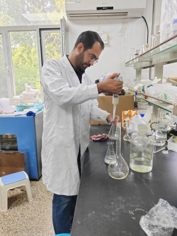 ▲穆罕默德正在配置测定土壤有效磷的浸提剂。