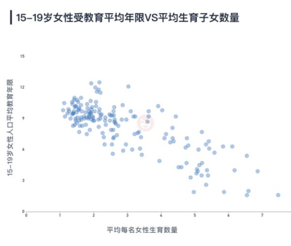 按照全球数据,育龄女性受教育的平均年限与平均生育子女的数量呈反比。也就是说受教育的时间越高、年限越长,生的孩子数量就越少。