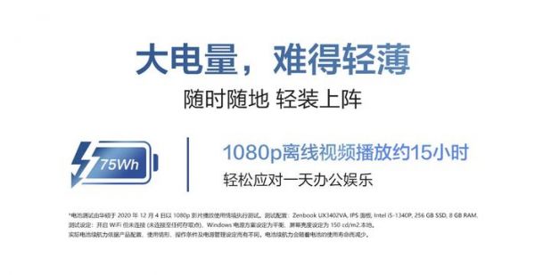 如上图所示,灵耀 14 2024 和 2023 款均采用了 75Wh 电池。灵耀 14 2024 的视频播放时间达到了 18 小时,而老款灵耀 14 2023 笔记本续航时间为 15 小时。