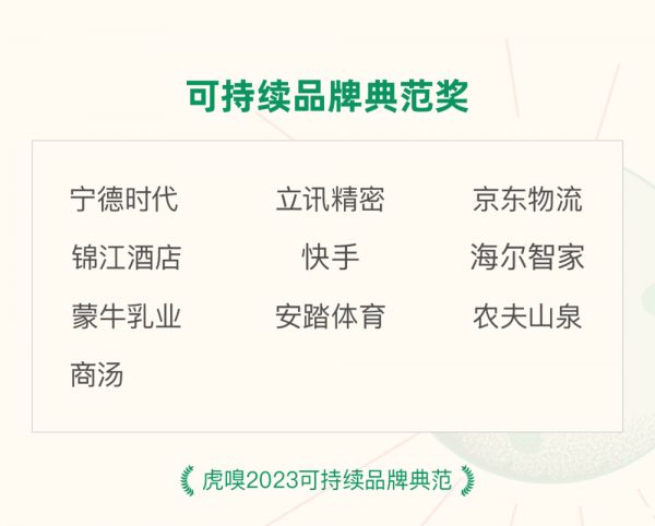 本着对ESG实质性进展的关切,下半年虎嗅开展了“可持续品牌典范”的评选,寻找今年在ESG领域创造了实质价值、值得市场和公众关注的中国企业。我们结合了ESG数据筛选、案例分析和专家评委投票三种方式,首先评出了10家在近两年、尤其在2023年进展显著的企业。
