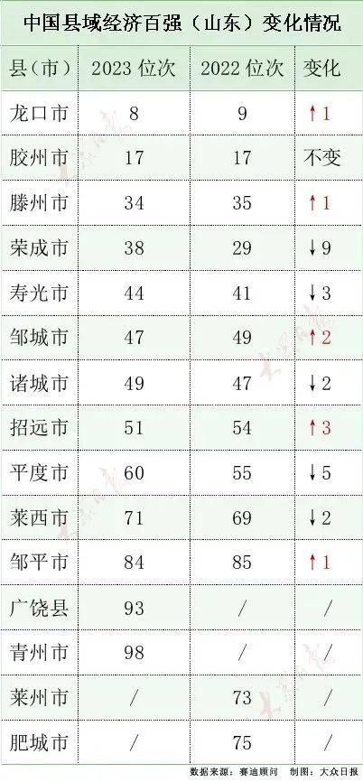 2021年,山东社会科学院研究院雷刚曾撰文指出,“山东县域经济总量、城镇人口均占全省半壁江山,但近几年发展势头有所放缓”。比如,“百强县”榜单山东入围了13个,相比过去辉煌时期的20多个锐减严重,威海的文登、潍坊的高密、泰安的新泰等等早已不在榜上。