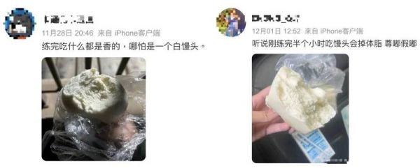 而另一边,不少健身人纷纷长出“碳水脑袋”,每日训练结束后第一时间掏出包里提前备好的大白馒头啃得心满意足。