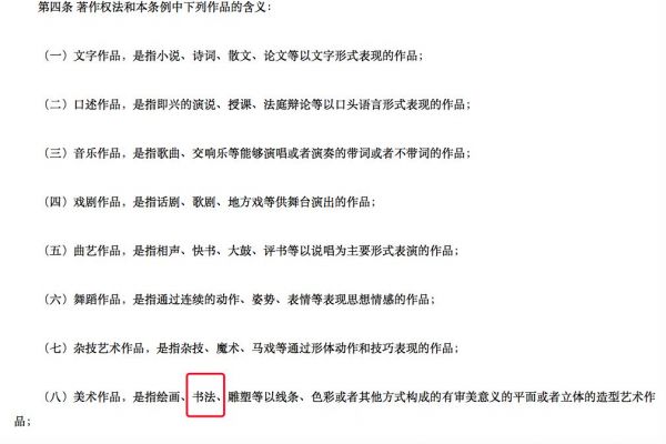 根据《中华人民共和国著作权法实施条例》中对“作品”的定义:美术作品是指绘画、书法、雕塑等以线条、色彩或者其他方式构成的有审美意义的平面或者立体的造型艺术作品。