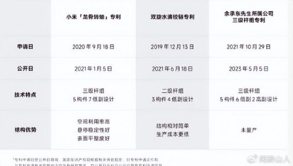 在科技领域,尤其是在快速发展的智能手机市场中,创新和专利权的争议时有发生。最近,小米集团与华为余承东之间的争论就是一个典型的例子。这场争论围绕着两家公司各自声称的折叠屏手机转轴技术——小米的“龙骨转轴”和华为的“双旋水滴较链”。