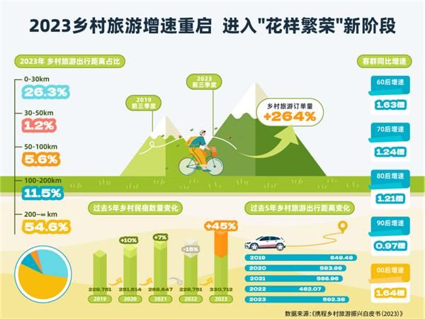 经历疫情短暂扰动后,中国乡村旅游市场在2023年重新回归高速增长。根据携程平台数据显示,2023年,国内前三季度乡村旅游订单量已恢复至2019年同期的264%,复苏势头强劲。