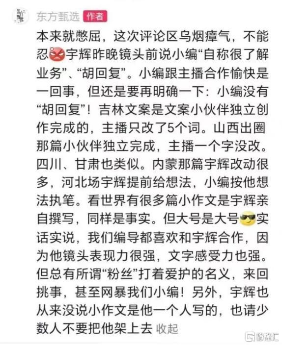 更何况东方甄选的小编还在评论区打了补丁,说主播有时候也写,比如董宇辉写内蒙古,另一个主播顿顿写河北,但写文案太辛苦,所以大多数是文案团队写的。