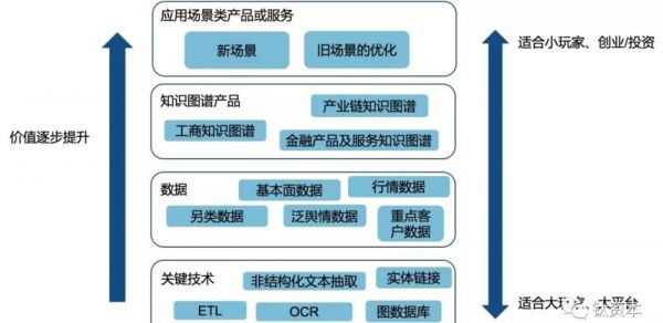 第一个层次的创业机会是关键技术,涉及到数据的清洗、ETL等操作,还有非结构化文本抽取、OCR(尤其是面对一些复杂单据的OCR)、实体链接、图数据库等关键技术。