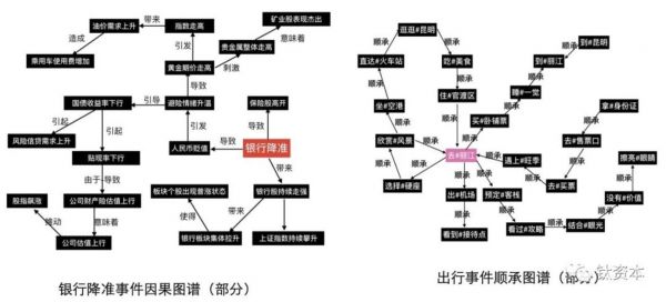 像银行降准因果图谱和出行的顺承图谱,可以很自然的做事件之间的逻辑关系,比如银行进行降准可能会有什么后果,直接从降准图谱中查找即可,对推测事件之间的影响会比基于知识图谱方式来要直接、自然。