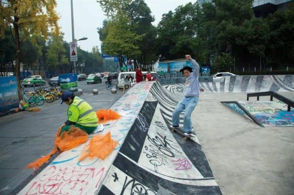 2023年11月24日,成都。在街头玩滑板的年轻人。(图/阿灿)