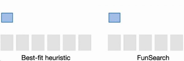 FunSearch直接给出了一个可以自动定制的程序(可以根据数据的具体情况进行调整),其性能超过了传统的启发式方法(Best-fit heuristic),可以用更少的箱子打包相同数量的物品。