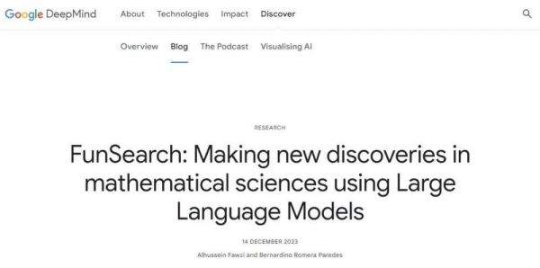 FunSearch的研究意味着:历史上第一次有人用大模型,对科学或数学中具有挑战性的开放性问题给出了新的发现或解法。