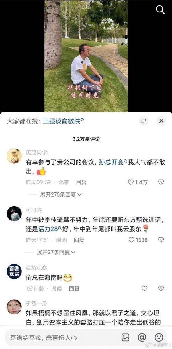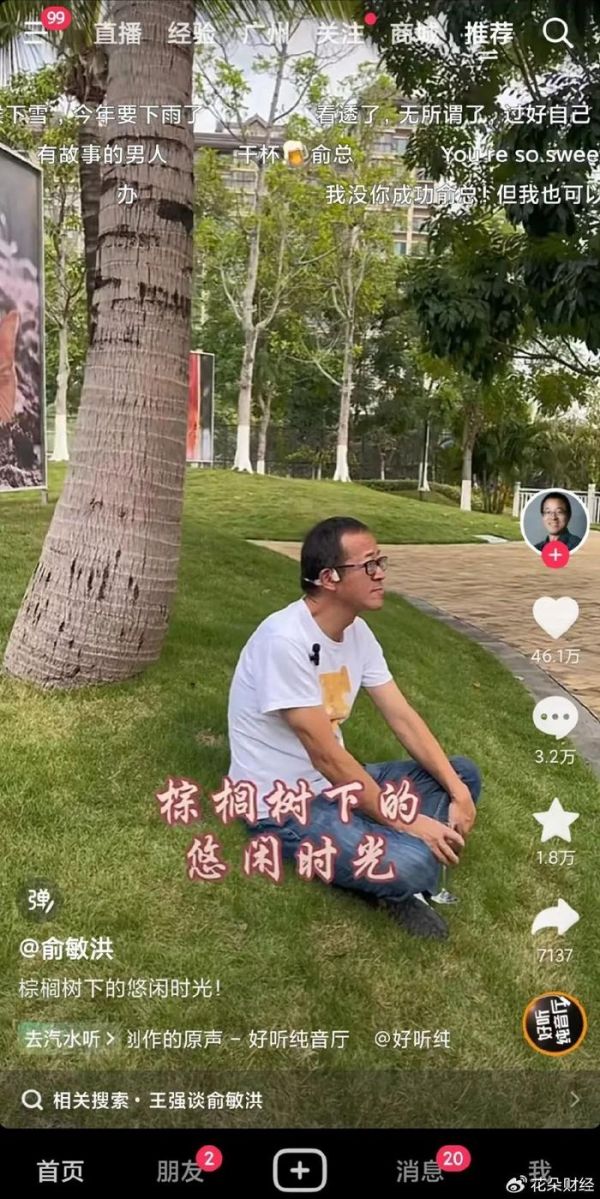 舆论爆炸之际,老俞发抖音坐在棕榈树下喝红酒。意态闲适。然而评论区很不省心——