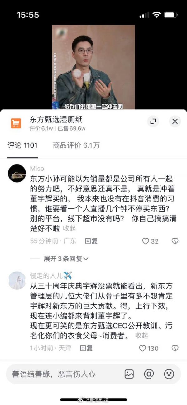 【#没有董宇辉的东方甄选到底还行不行##专家称失去董宇辉不会撬动东方甄选根基#】“东方甄选”“东方小孙”(东方甄选CEO孙东旭)的抖音评论区被网友攻占了,东方甄选陷入了严重的“去董宇辉化”危机。没有董宇辉的东方甄选到底还行不行?互联网产业分析师张书乐告诉@新浪科技 ,在东方甄选刚成立之际,没有董宇辉也会有别人,只是未必会突然之间爆火到如此程度。不过,在目前的局面来看东方甄选不可能“背刺”董宇辉,但未来东方甄选也必须要有其他的主播,不能把鸡蛋放在同一个篮子里。
