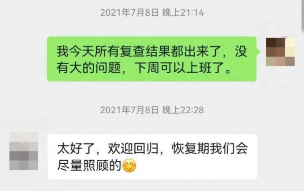 图2:公司同事表示,会尽量照顾重回单位的李漾。