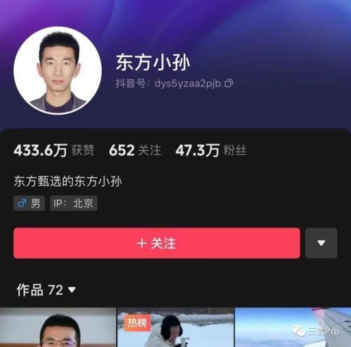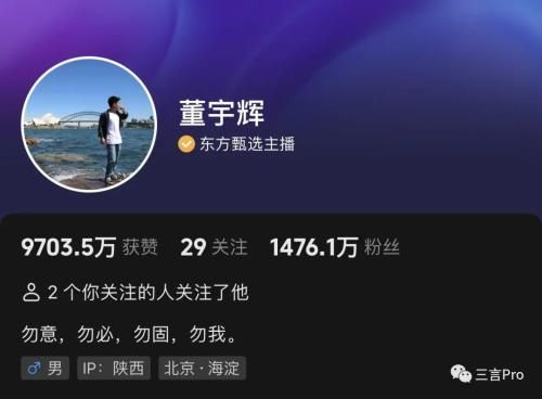 三言Pro注意到,或许可以通过抖音的“共同关注”提示,猜测出董宇辉是否关注了某个人。