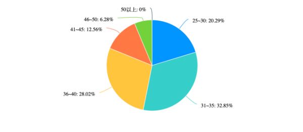1、填写问卷的转型地产人中,“80后”占绝大多数,年龄段在31—40岁之间的人占比61%,25—30岁人群占比21%,41—45岁的占比13%,而46—50岁的有6%以上。