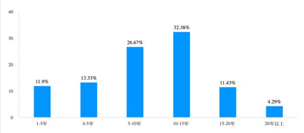 5、参与问卷的人中,约一半为资深地产从业者,入行10年以上,其中20年以上的占比约4.3%。从业5—10年的也有约27%。