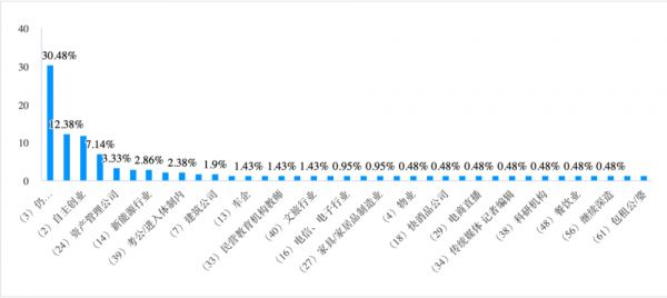 约12%的问卷填写者选择自主创业,其中电商(跨境电商)、自媒体、传媒广告公司为主流,其次是经营民宿/酒店、开装修公司和建筑分包公司,以及餐馆、咖啡馆、酒馆、书店、体育馆等实体。也有地产人转型从事大宗贸易,创办生物合成、新能源公司等。
