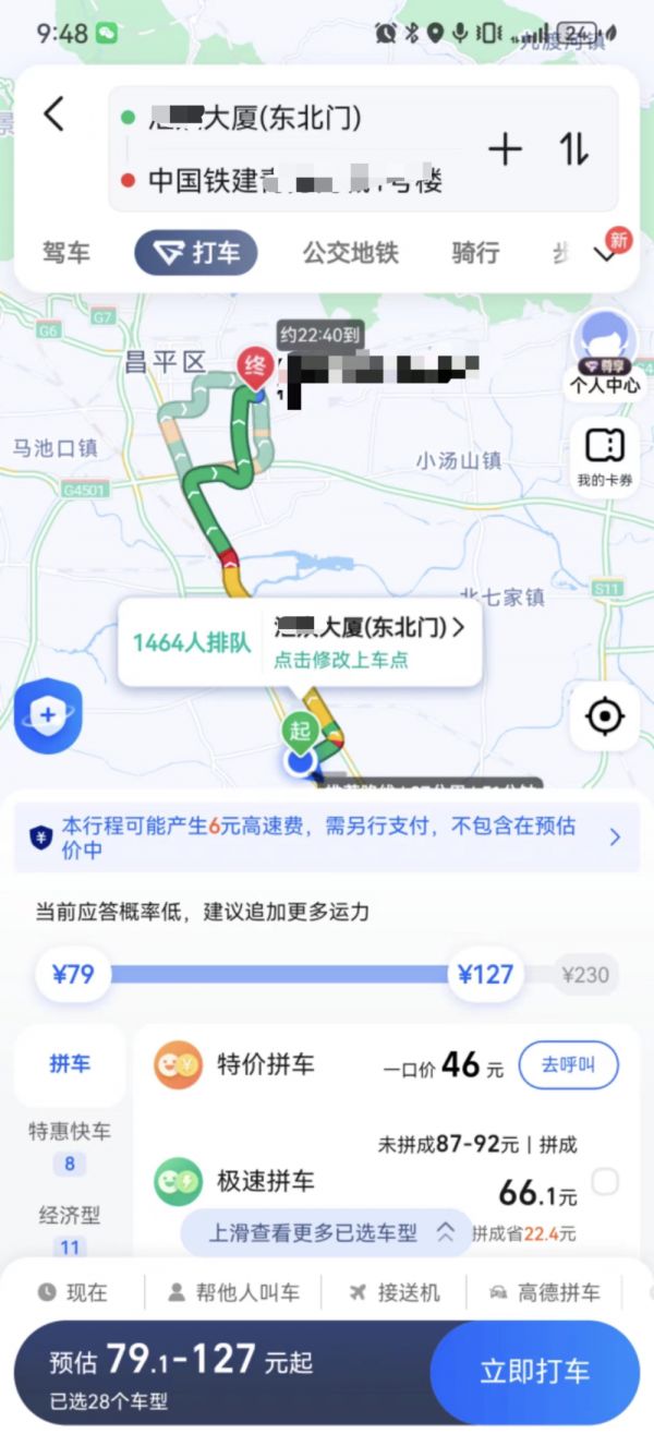 “平时这个点叫车,15-20分钟就能叫到。”她是还在办公室里的、为数不多可以叫到车的人,还捎带上了两位没有叫到车的同事。