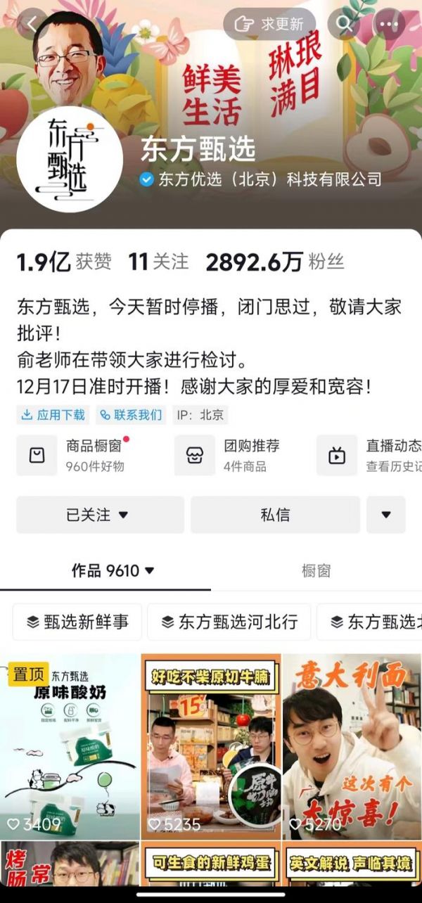 突发!东方甄选宣布:暂时停播!
