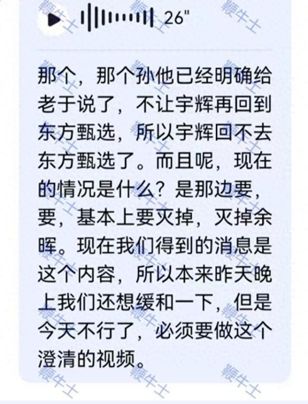 东方甄选方并没有对媒体明确否认这则聊天记录,俞敏洪的说法是“没那么严重”,而董宇辉则表示“不方便回应”。