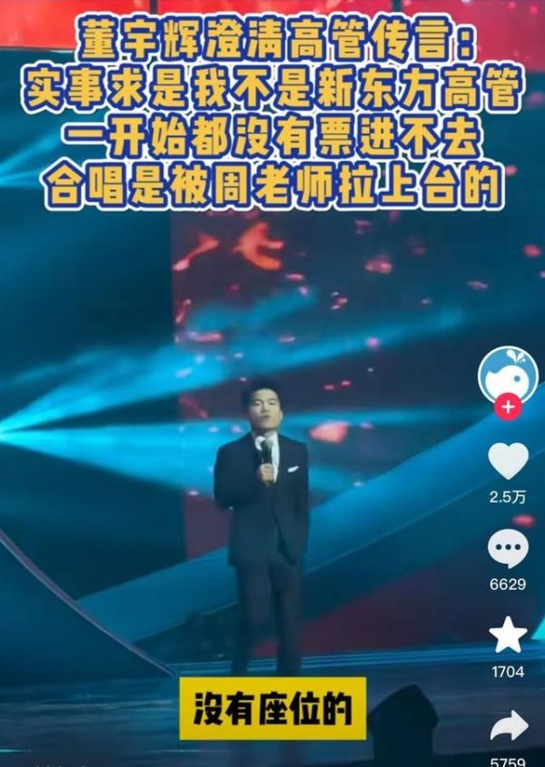相比较而言,东方甄选的董宇辉,尽管在孙东旭的口中有着“不止上千万的年收入”,但不久前的新东方年会视频显示,董宇辉并非公司高管,在演出时甚至连一个座位都没有,这被“丈母娘”们认为是对董宇辉的不尊重。