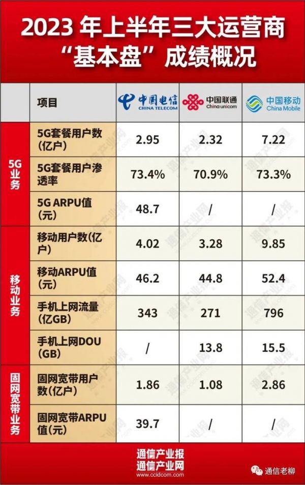 移动的手机和宽带用户更是远超另外两家,绝对的市场主导地位。