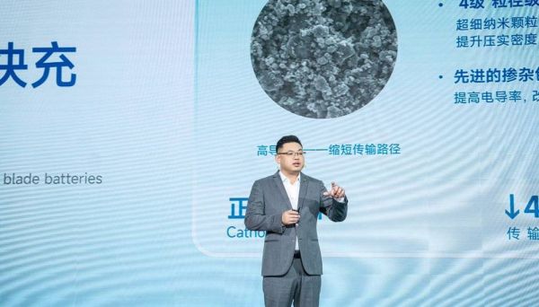 在短刀上实现快充,背后是电池工艺和设计上的又一次突破。例如电池的正极部分,采用的掺杂包覆技术,离子传输路径降低了40%,电阻降低了10%;负极采用的表面技术和一次颗粒、二次颗粒的搭配技术,以及吸液性更好的添加剂,让动力性能得到了提升;再包括电解液使用的新材料,以及类似于全极耳的直焊工艺,让载流面积更大,最终让短刀快充成为了可能。