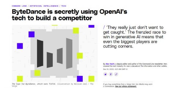 就在今天,据外媒The Verge的报道,由于字节跳动秘密使用OpenAI的技术开发自己的大语言模型(LLM),直接违反了OpenAI的服务条款规定,因此字节跳动的账号被暂停使用。