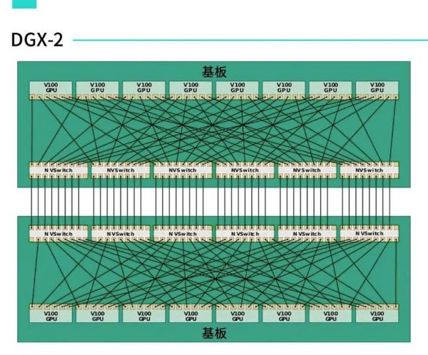 也就是说,NVLink不仅负责DGX服务器内部8个GPU的连通,也负责整个服务器之间每个GPU的数据传输。