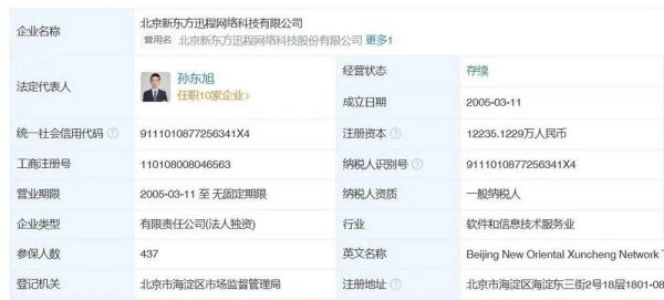 工商信息显示,孙东旭是多家东方甄选相关公司的法定代表人,不仅包括持有东方甄选品牌IP的北京新东方迅程网络科技有限公司,还包括东方甄选旗下旅游文化公司、北京电商分公司、人力资源分公司等。
