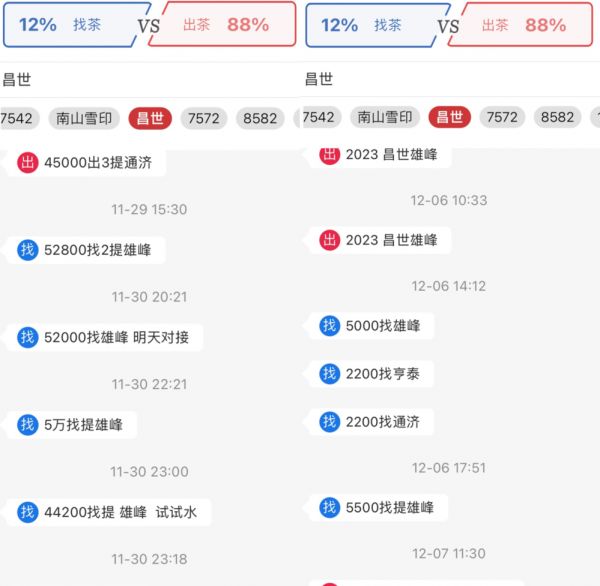 昌世茶饼在11月末和12月初的价格变化/找找茶