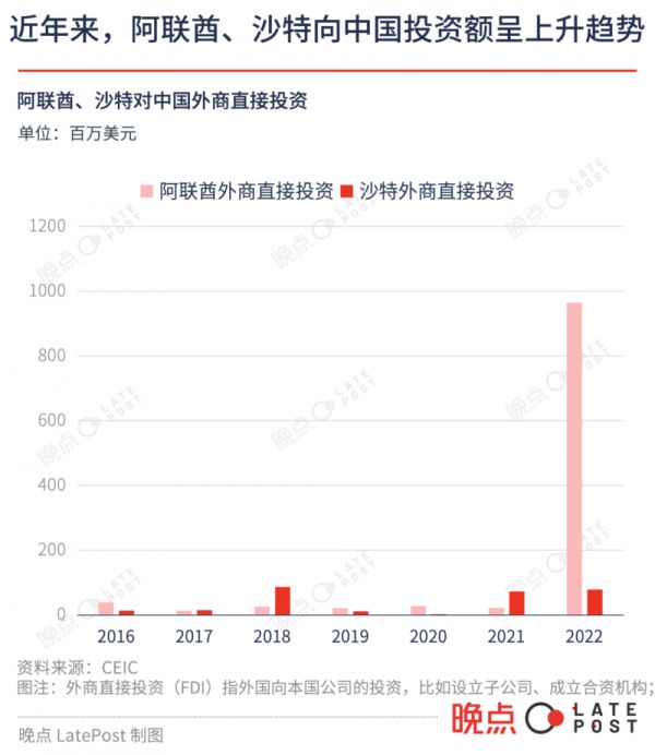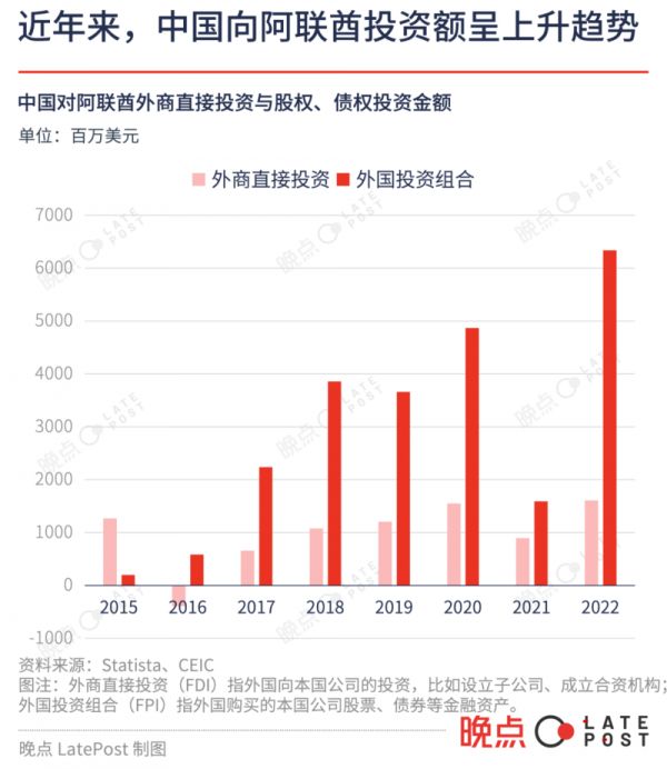 中国与阿联酋的外交友好往来有更长的历史。2015 年底,中国国家开发银行、中国外汇局和阿布扎比主权基金穆巴达拉合计出资 100 亿美元设立中阿基金,以投资基础设施和高端制造等行业。