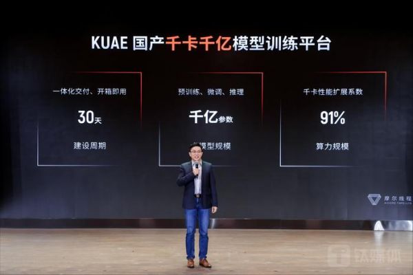 摩尔线程KUAE智算中心解决方案则是基于MTT S4000和双路8卡GPU服务器MCCX D800,集群支持从单机多卡到多机多卡,从单卡到千卡集群的无缝扩展,是以全功能GPU为底座的软硬一体化的全栈解决方案,旨在以一体化交付的方式解决大规模GPU算力的建设和运营管理问题。该方案可实现开箱即用,大大降低传统算力建设、应用开发和运维运营平台搭建的时间成本,此次发布的摩尔线程KUAE千卡模型训练平台,建设周期只需30天,可实现快速投放市场开展商业化运营。