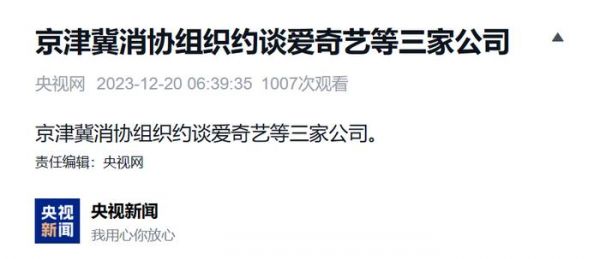 IT之家 12 月 20 日消息,据央视新闻报道,近日北京、天津市消协、河北省消保委联合约谈爱奇艺、京东以及青岛梦想绽放科技有限公司。