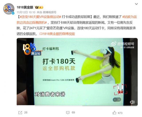 此外,小莉帮忙、1818 黄金眼等民生节目也报道了类似的情况,多位用户购买 VR 眼镜后,打卡后却没有获得相应的 E 卡返还。