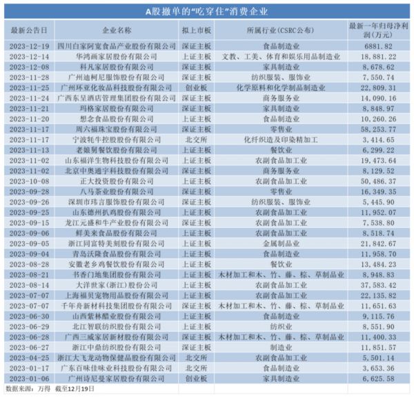 2023年,消费类公司的IPO(首次公开募股)之路波折不断。尤其在IPO阶段性收紧之后,涉及“吃穿住”的消费类公司扎堆撤单。