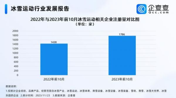 整体来看,作为后冬奥的第一个冰雪季,消费者延续了对冰雪运动的热爱。据企查查数据显示,2022 年及 2023 年前 10 月,我国分别新增冰雪运动相关企业 1430 家、1786 家,同比增长 24.90%。