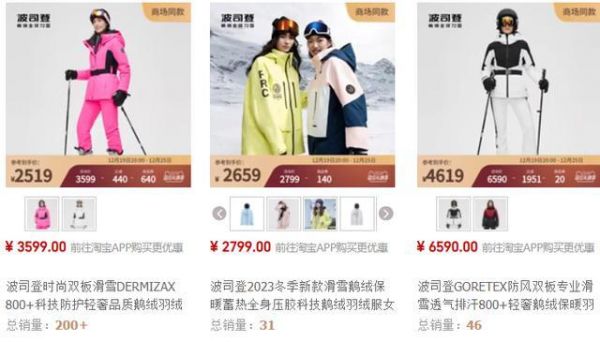 图片来源:天猫截图波司登集团另一子品牌雪中飞,也将 " 重新定义滑雪服 " 作为重要产品升级策略,目标为打造 " 年轻人的首套滑雪服 "。围绕这一目标,雪中飞推出了 " 高峰滑雪系列 " 产品,但价格相比波司登要 " 亲民 " 很多。在其官方旗舰店," 欧豪同款 " 和 " 李一桐 " 同款的高峰滑雪系列短款羽绒服,目前预估到手价均为 1529 元。