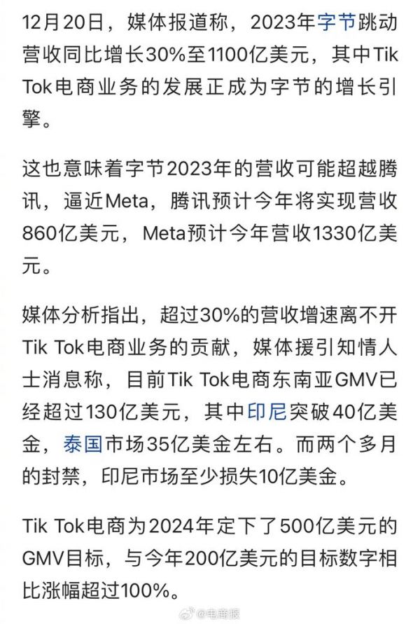 #字节今年销售额超腾讯# 2023年营收突破1100亿美元,超越腾讯,抖音集团要坐上中国互联网头把交椅了?[思考](财联社)