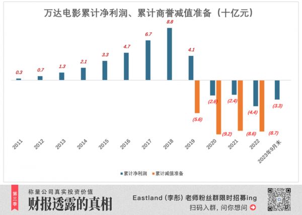 2023年前三季,万达电影净利润11.2亿(没有计提商誉减值准备),2011年以来总盈亏回升至负32.7亿。