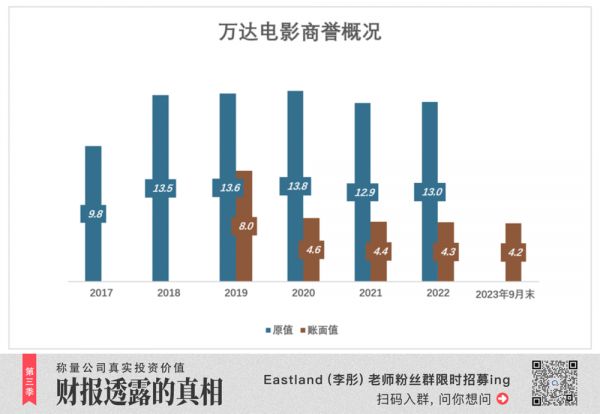 截至2023年9月末,万达电影商誉账面值为42亿。