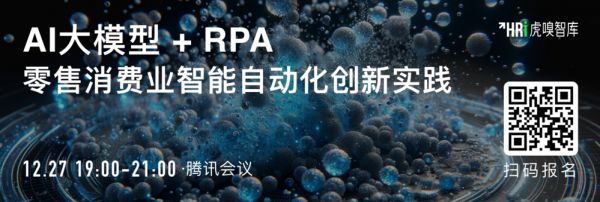 基于以上背景,2023年12月27日晚7点,虎嗅智库502线上同行将举办主题为“AI大模型+RPA:零售消费业智能自动化创新实践”的线上圆桌研讨会,本次研讨会邀请来自良品铺子、实在智能、UiPath、壹沓科技等企业的零售消费、AI大模型+RPA领域的资深专家分享他们的经验和见解,一同探讨AI大模型+RPA的在零售消费业落地实践与挑战,畅想未来AI技术演进与变化趋势。