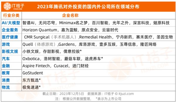 IT 桔子数据显示,在 2023 年腾讯公开出手投资的 35 家国内外公司中,其中国外企业有 9 家,占比超过 1/4。