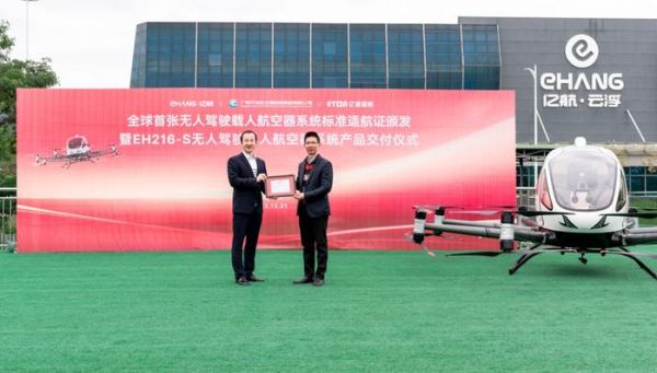 亿航智能获得全球首张无人驾驶载人电动垂直起降航空器适航证