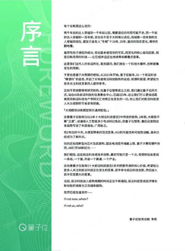 《年度十大前沿科技趋势》系列报告准确把握科技前沿趋势、深入了解技术突破的本质、串联技术突破与产业风口、站在前沿科技产学研交汇地带,帮助读者更早地洞悉技术驱动的未来。