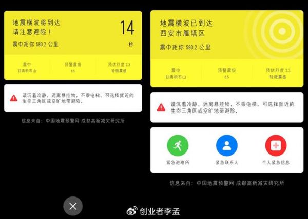 很多人也是接受了这个预警跑到了楼下,在甘肃的很多地区、四川的很多地区,陕西的很多地区以及青海的很多地区网友都收到了,相信在手机预警下也能帮助很多人得到安全的提示!不过iPhone手机的确没有提醒消息!