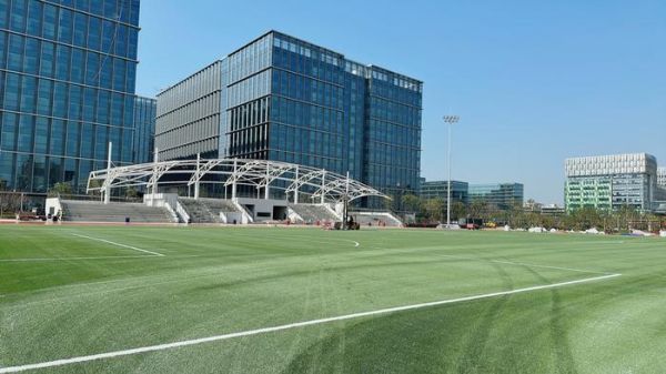 园区东北侧,设有标准足球场、400米跑道、室外篮球场、室内运动场等等,氛围延续了阿里巴巴园区一贯的校园感,年轻、朝气有活力。